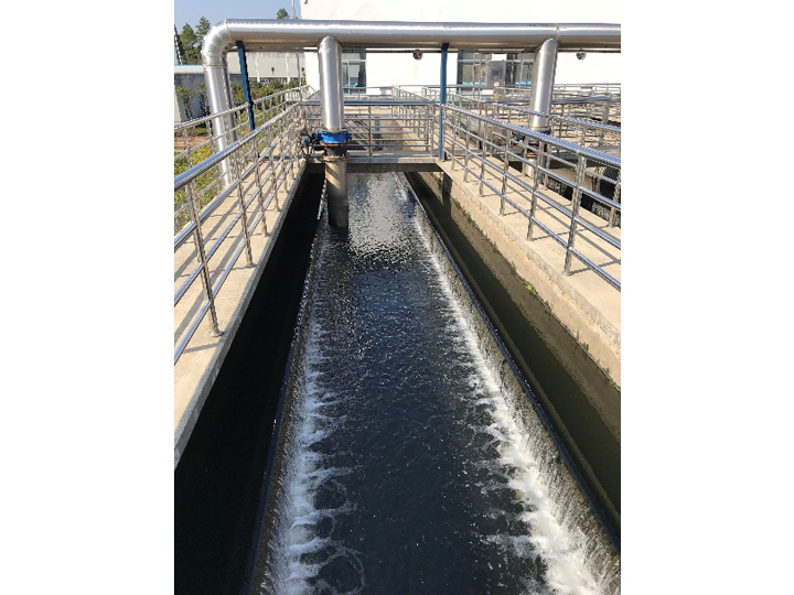 反硝化深床濾池池體,采用狹長廊道使進水均勻;濾磚結構使濾池反沖洗效果良好;反硝化過程中產生的氮氣會使過濾產生氣阻,通過驅逐氮氣,確保濾池運行效果。