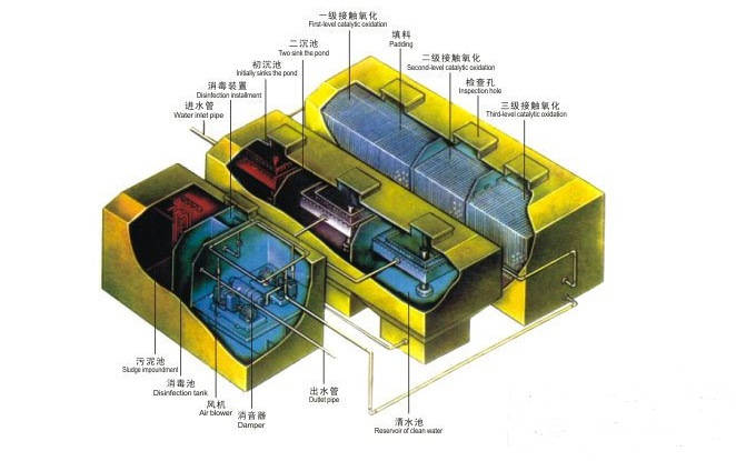 2、二級生物接觸氧化MBR處理工藝,保證出水穩定性。采用A/O二級生物接觸氧化MBR處理工藝,系統均采用鼓風曝氣,活性污泥的體積小,對水質的適應性好,出水水質穩定,不會產生污泥膨脹。
